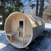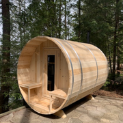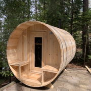 Indulge in the epitome of relaxation with the CT Serenity Barrel Sauna from our Canadian Timber Collection by Dundalk LeisureCraft. This exquisite sauna is meticulously handcrafted from Eastern White Cedar, renowned for its light color and tight knots, providing a serene and natural ambiance.