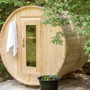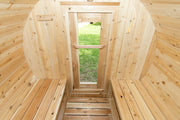 The sauna kit includes solid cedar cradles, aluminum bands with stainless steel hardware, and is thoughtfully packaged in a ready-to-assemble kit. With a seating capacity of 2-4 people, it's the ideal backyard getaway for you, your spouse, and a small family.