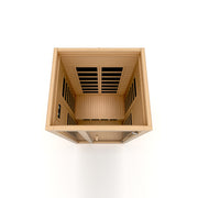 Experience the benefits of infrared heat in the comfort of your home with the Dynamic Gracia 1-2 person sauna. Crafted from environmentally-friendly Canadian Hemlock wood, this sauna combines wellness, relaxation, and sleek design.