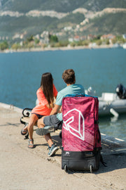Experience travel in style with the Premium Luggage Bag in Raspberry. This 90L wheely-backpack boasts an easy-entry zipper, padded straps, belts, and accessory compartments for smooth and effortless packing.