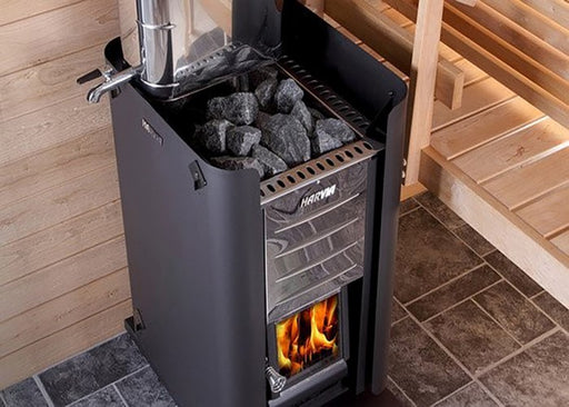 HarviaThe Harvia pipe model water heater is placed directly on top of the stove, and the tank holds 22 litres of water. The water heats up quickly, as th...