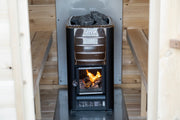 Designed with care, the sauna features a large tempered glass door and black asphalt shingles for exterior protection. The easy-to-assemble kit provides flexibility with wood burning or electric sauna heater options.